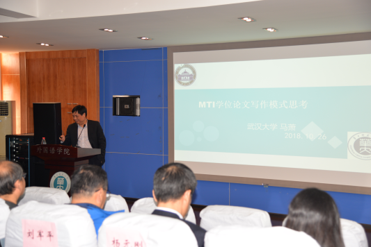 本届高层论坛于上午9:00正式开始。论坛伊始,武汉大学的马萧教授以“MTI学位论文写作与思考”为题发言,从MTI学位论文类型特点着手,阐释了MTI学位论文的现状并深度剖析了MTI学位论文所存在的问题,提出其解决措施,即论文写作应以批评分析(Critical Analysis)为主,将理论依据辅之实际案例再深度分析。马萧教授首番精彩的演讲为全场MTI新生指清其未来论文写作的规范与要求,现场气氛愈发热烈。而后,湖北大学杨元刚教授 “基于实践教学的MTI人才培养探索:以湖北大学为例”展开精彩叙述,杨教授向与会的师生们展示了湖北大学在MTI培养方面做出的努力与丰硕的成果,对与会高校翻译人才的培养模式都有重要的借鉴意义。