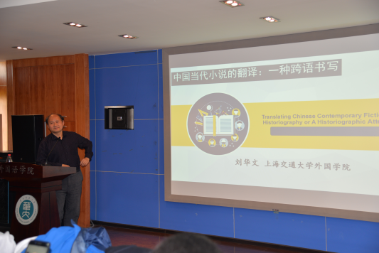 下午的论坛于2:00准时开始,武汉大学的刘军平教授以围绕“中华学术外译”为题展开学术研讨。刘教授认为翻译工作者有必要提供中国概念和中国方案的支撑,并在此基础上,重建国际学术话语权,躬行译介,重塑译介的人文社科话语。刘教授也强调在推进中国文化“走出去”的过程中更应注意取效功能(perlocutionary effect),以讲话者与听话者相互追求理解的模式,以其共同认可的有效性主张(validity claim),为文化走出不可通约和跨越传播障碍提供一条可行途径,以达到较好的传播效果。