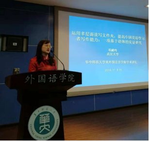 上午10时许,第二场讲座由武汉大学珞珈特聘教授、中国英语写作教学与研究专业委员会副会长、中国学术英语教学与研究协会常务理事邓郦鸣教授带来。邓教授的讲座题目是“运用多层面读写文件夹,提高中国英语学习者写作能力:一项基于语体的实证研究”。邓教授说到,读写文件夹在不同语境写作教学中运用普遍,然而对于运用文件夹提高二语写作能力的实证研究不多,值得探讨。邓教授通过教学实验法和访谈的数据结果,向师生们具体介绍实施多层面读写文件夹语体教学对于转变二语学习者的写作态度和提高二语写作能力等方面所起的效果。讲座最后,邓教授总结到,实施多层面读写文件夹语体教学,既注重学习过程,也兼顾学习结果。在中国外语语境教学实施多层面读写文件夹语体教学可以增强学习者的写作信心、提高学习者的评判性思维能力、社会交互能力和写作能力。 两场讲座使我院师生们收益匪浅,他们和二位教授交流良久,纷纷希望以后会有更多修辞学与写作方面的讲座和论坛。
