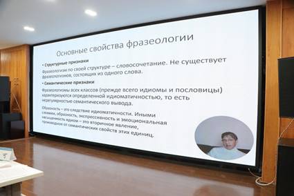 俄罗斯圣彼得堡大学Валерий Михайлович Мокиенко教授以视频方式做题为《俄语成语中的新现象(词典编纂问题)》的精彩报告。莫基延科教授认为,当今世界处于矛盾、冲突和多极化语境中,各民族、文化和语言的相互影响不断增长,并在所有语言里留下重要痕迹,积累形成新的语言单位:新词和新成语。语言学家和词典学家最重要的任务就是定期巩固进入该语言里的新现象、确定其源头、使用频率和修辞参数,阐释其涵义和用法。报告着重讨论俄语新成语的词典描写问题,介绍了圣彼得堡大学语言研究所编纂的《俄语新成语大词典》,词典包括约7000条新成语。新成语不是详解词典中所固定的固定结构,它们或是重新构造的,或是现实生活里诞生的,或是原有格言警句的变形改造,而俄罗斯科学院学派的理论和实践保证了俄语新词新义在理论研究和词典描写上的成就。