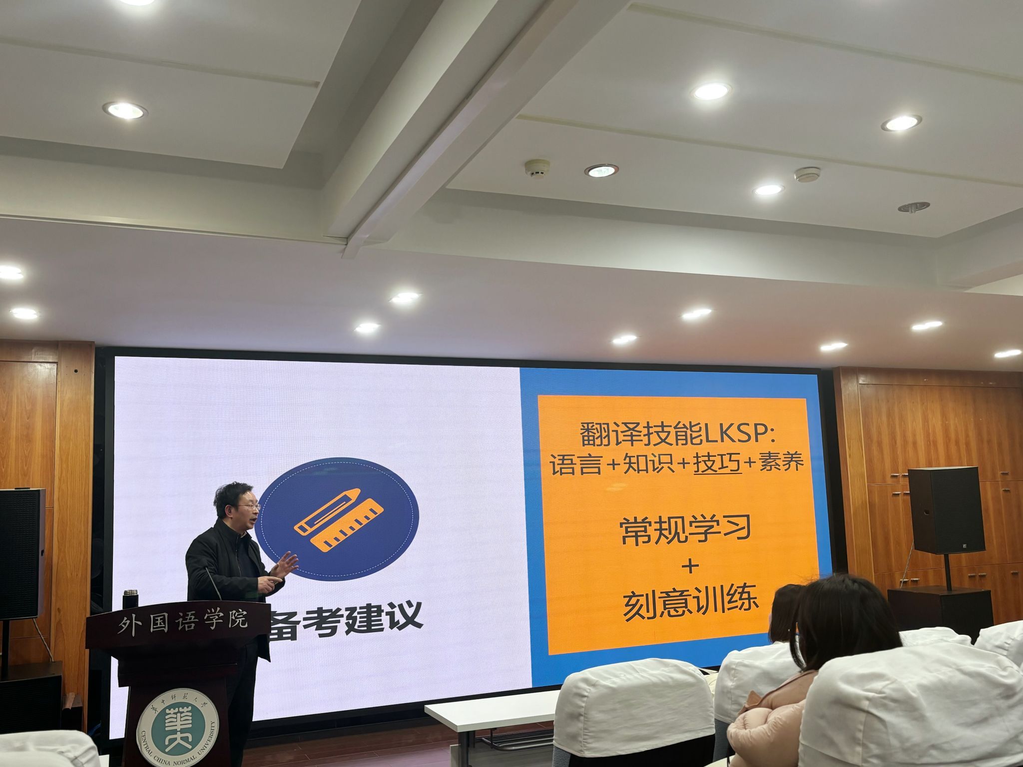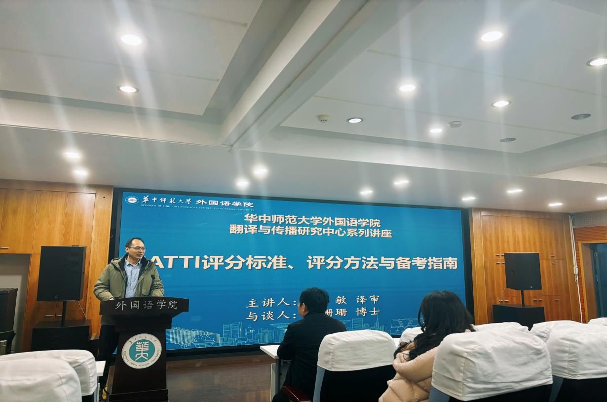 2024年12月26日下午,由开元(中国)官方网站登录界面主办的“CATTI评分标准、评分方法与备考指导”讲座在3504报告厅顺利举行。此次讲座特邀了全国翻译专业资格(水平)考试英语专家委员会委员、湖北省翻译工作者协会副会长兼秘书长、武汉大学黄敏译审/副教授主讲。黄敏老师拥有多年CATTI考试阅卷、官方指定教材编写及模拟考试训练平台命题经验,是国内翻译证书考试研究的知名专家。其辅导讲座内容丰富、幽默风趣、干货满满,吸引了众多师生参与。本场讲座由MTI教育中心覃江华教授主持。