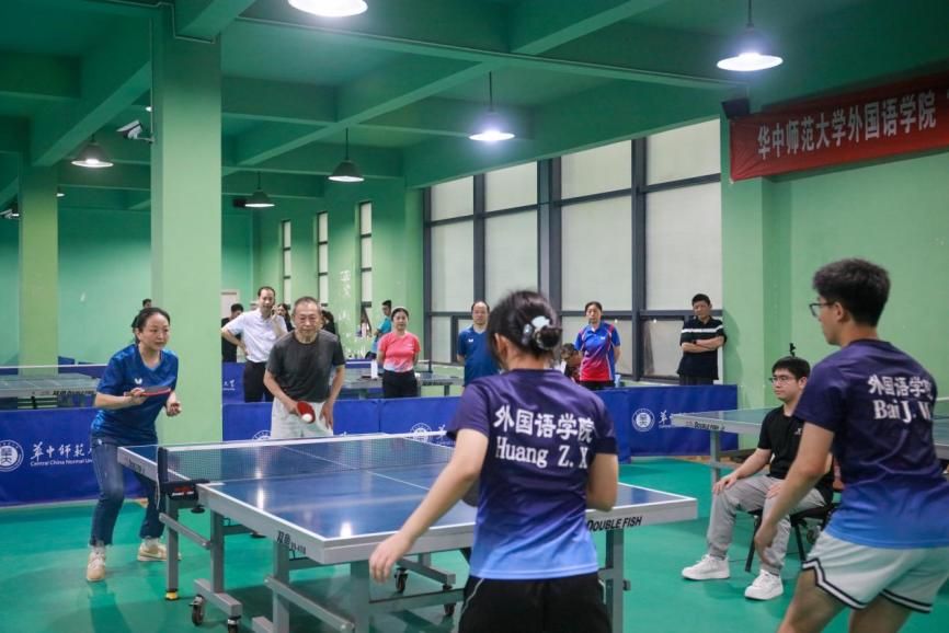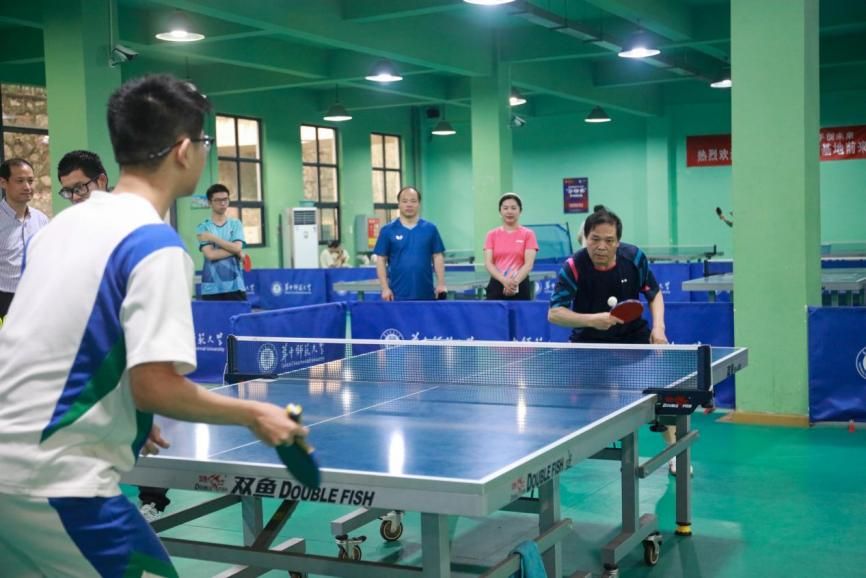 乒乓球赛在乒羽中心精彩上演。学院党委书记麻旎、党委副书记罗舰、工会主席何卫华及多位教师代表亲自参赛,将比赛氛围推向高潮。